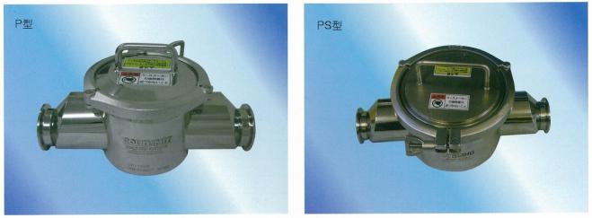 | 特長 | P型は中心にφ65の大型マグネットを採用し、より強力に磁性異物を除去します。 PS型はさらに6本のマグネットを組み合わせ、1台でより多くの金属異物を除去する事が可能です。 ケーシングはステンレス切削加工で強度あり。 内外面バフ研磨で表面なめらかな仕上がり |