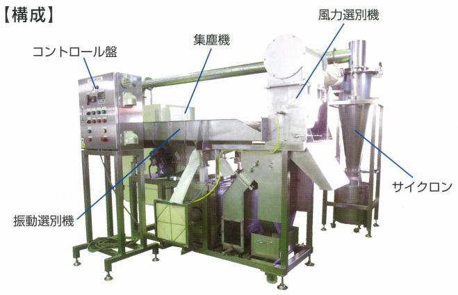 | 構成 | 振動選別機 風力選別機 サイクロン 集塵機 コントロール盤 |