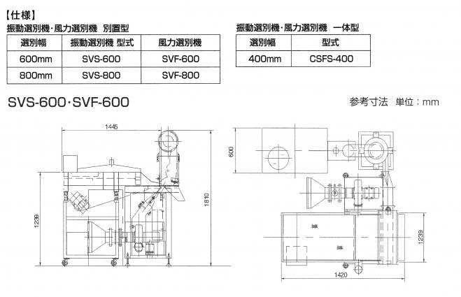 | 製品名 | 乾燥品用異物選別装置 振動選別機:SVS型/風力選別機:SVF型 |