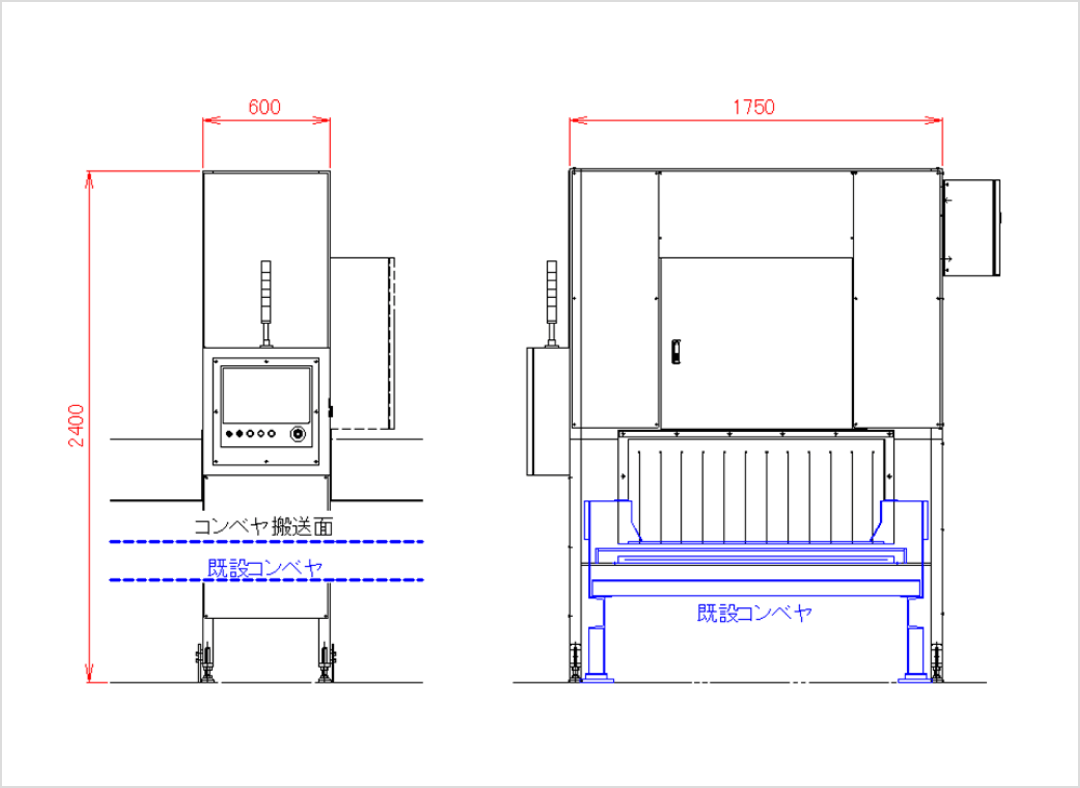 機械本体幅が600㎜と省スペースです。(X線漏洩