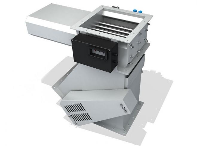 | 特長 | 製品の流れを妨げることなく、自動クリーニング。 人力で清掃が難しい場所などにも、設置が可能です。 コンパクト設計により、小スペースでの設置が可能です。 磁性異物は特殊構造により、確実に系外排出されます。 省力化に貢献します。 プログラム制御により、清掃が可能です。 |