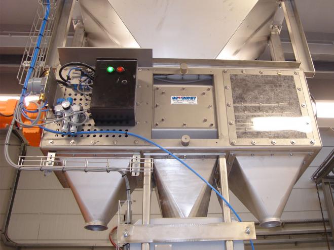 | 特長 | 油分を含む粉末や、積層しやすい粉末、電子部品材料などの、一般的な格子マグネットでは閉塞、滞留、蓄積しやすい製品に適しています。 二重管構造となっており、清掃が容易で、洗浄のバラつきがありません。 製品の流れを妨げることなく、自動クリーニング。 人力で清掃が難しい場所などにも、設置が可能です。 食品分野にも対応します(HACCP) フランジは角型・丸型以外にもご用意できます。 磁性異物は特殊構造により、確実に系外排出されます。 省力化に貢献します。 プログラム制御により、清掃が可能です。 |